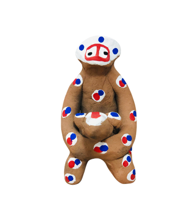 養老7年(723)の元旦に、「虎の歯(このは)」の里に住んでいた都の落人が夢枕に立った老翁のお告げによって奈良の春日大明神を祀り、神社に奉納する祭器を木葉山の赤土を用いて作りました。残った土を捨てたところ、それが猿に化けたという伝説から生まれたものといわれています。 この木葉猿は、型を使わず指先だけで粘土を捻って作り、素焼きした素朴な玩具で、元は無彩でしたが、現在は彩色したものもあります。悪病・災難除け、子孫繁栄などのお守りとしても用いられています。 「めしくい猿」は、一生食べ物に困らないようにという願いが込められた木の葉猿です。 寸法:縦 50㎜×横45㎜×高さ80㎜ ※個体差があるため、記載寸法は目安の数字となります。 納品事業者:木の葉猿窯元