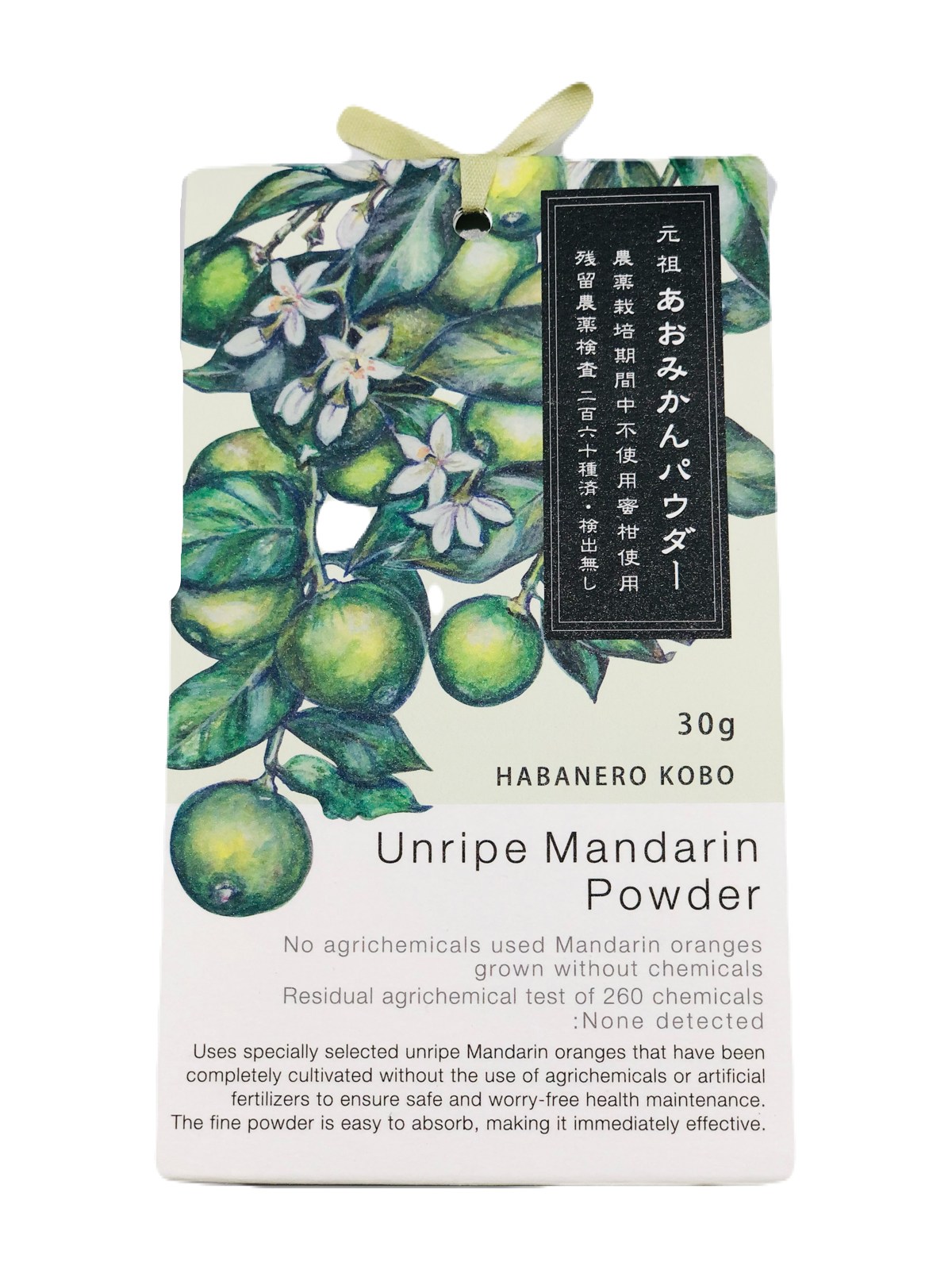 安全に飲んで健康になって頂きたいという想いで、完全無農薬無肥料で栽培したあおみかんだけを使用。アレルギー症状抑制効果があるとされています。