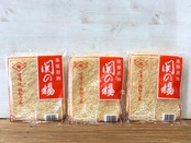 常温で長期保存できる点が特徴で、豆腐を薄く切り水切りし油で揚げるという昔からの独自製法で、出来たての味わいを保つことが出来ます。通常の油揚げよりも大きく独自のひきのよい食感で、あげ巻き寿司など様々な食べ方が楽しめます。