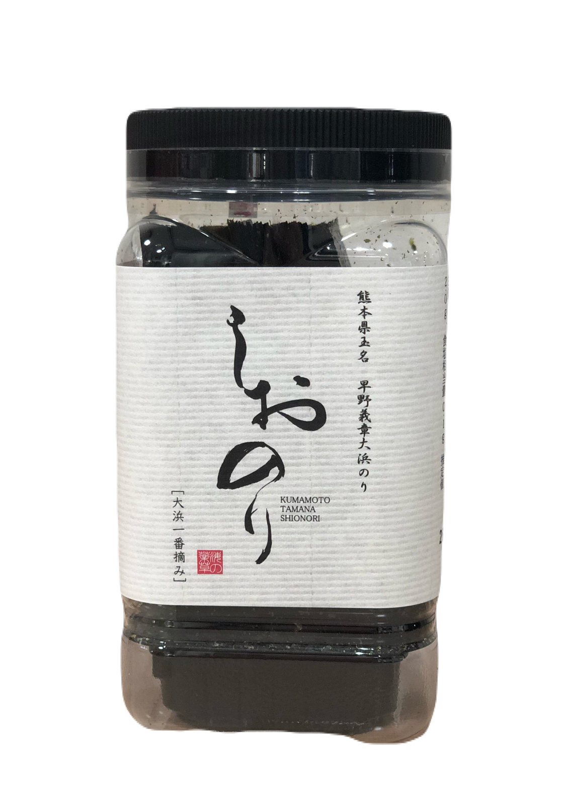玉名大浜産、極上秋芽一番摘みを原料使用し、胡麻油と焼塩にて風味豊かに仕上げた塩海苔です。