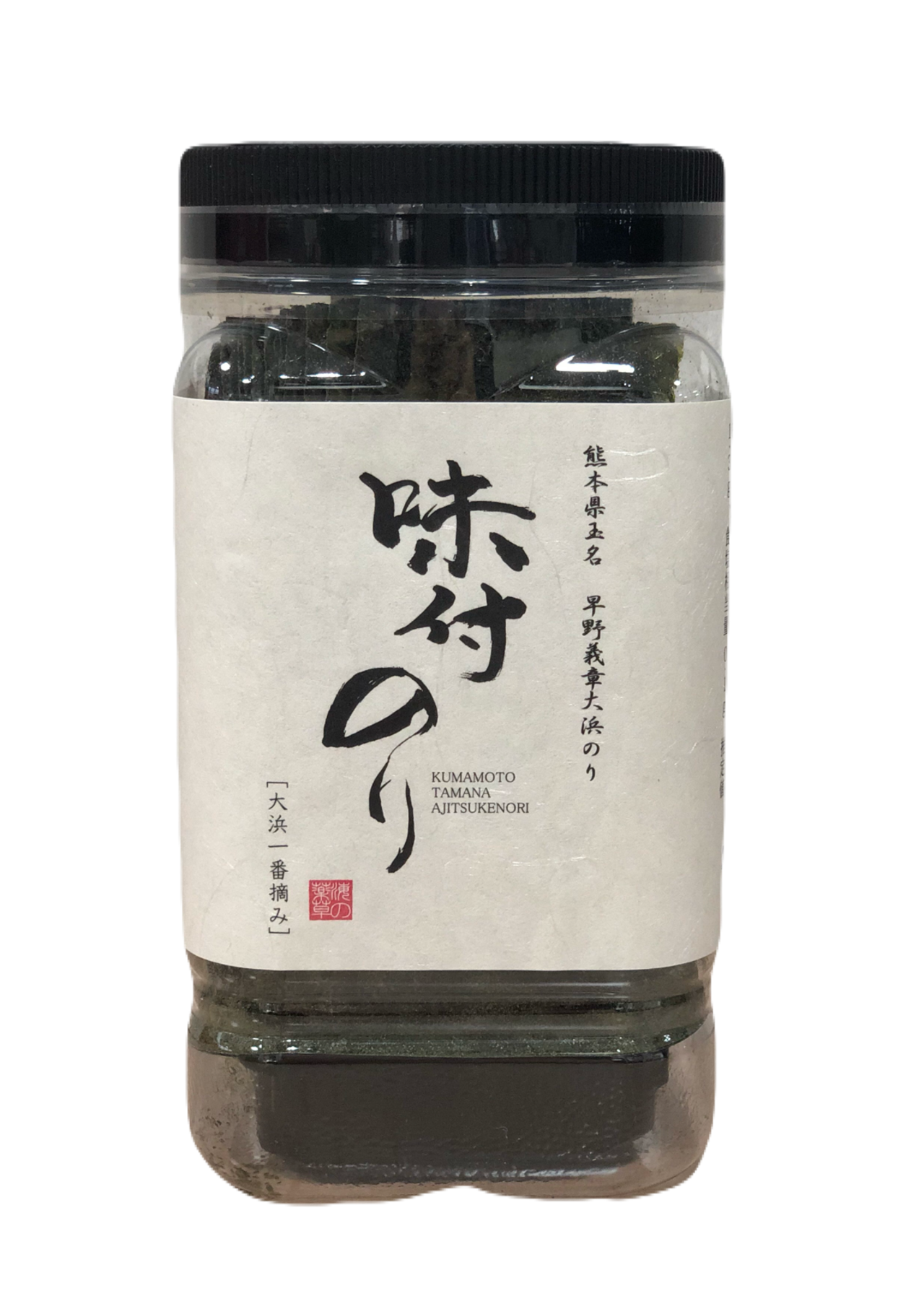 玉名大浜産、極上秋芽一番摘みを原料使用し、秘伝のたれにて風味豊かに仕上げた味付け海苔です。