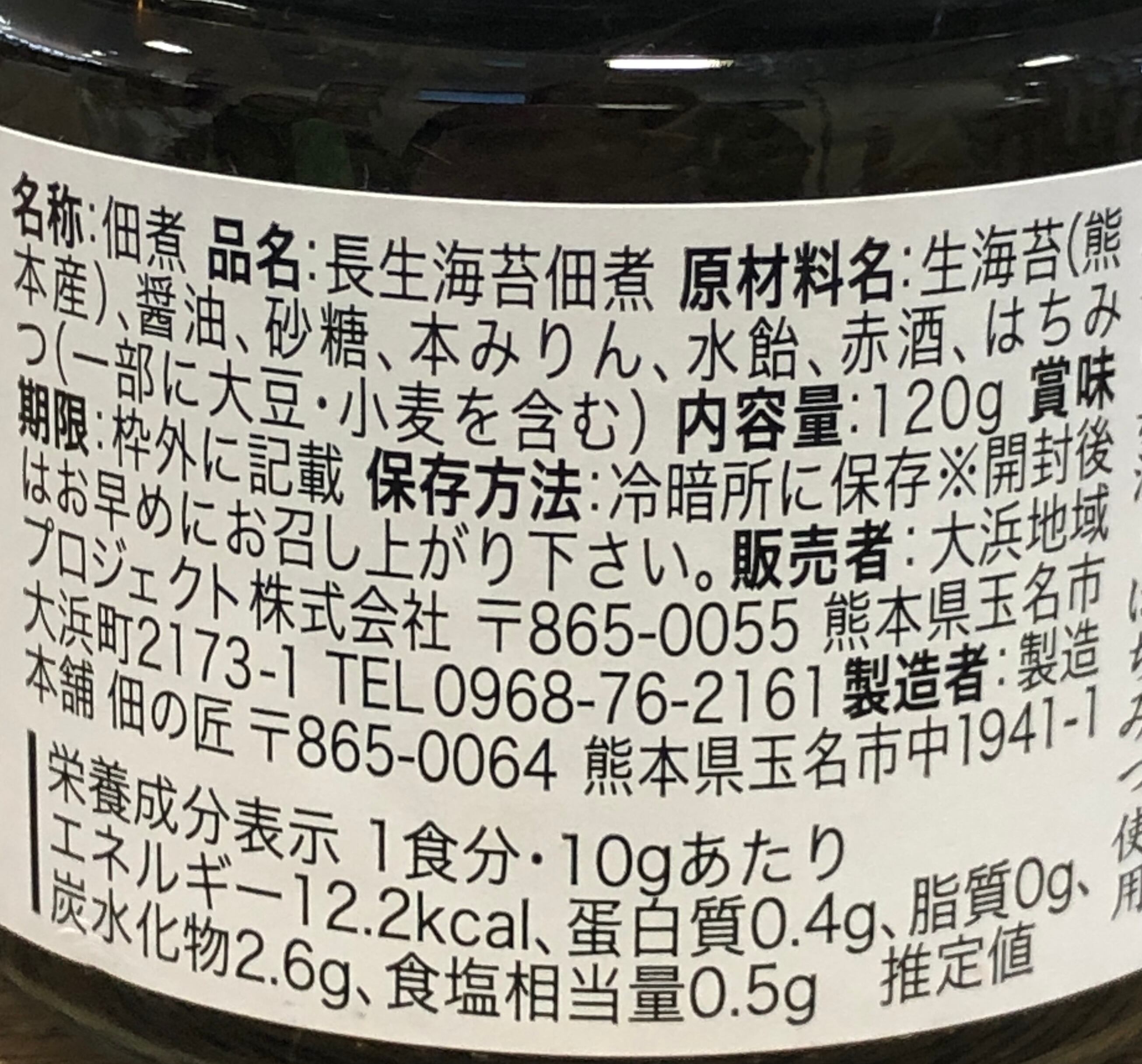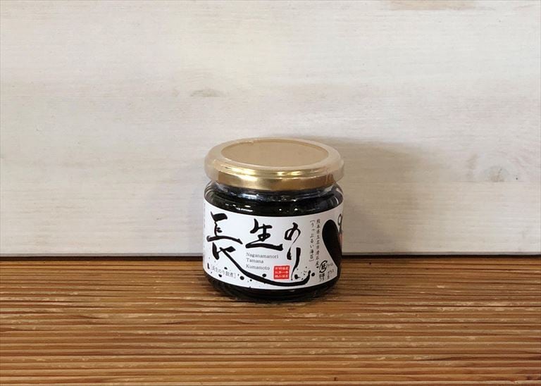 熊本玉名産の生海苔を熊本の伝統酒「赤酒」と「蜂蜜」で味付けした佃煮です。