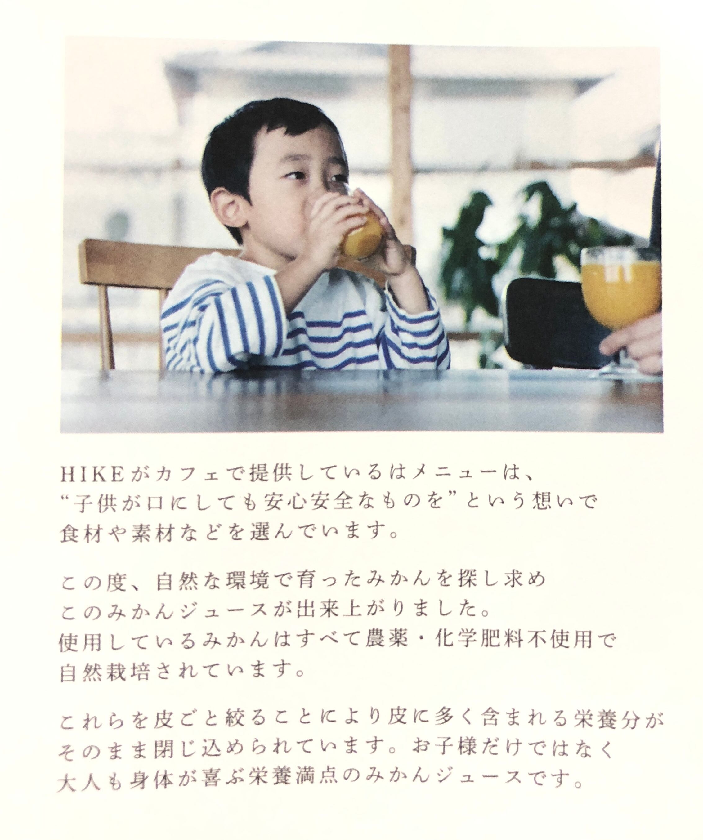 本商品は、安心安全なものを提供したいという思いで、HIKEプロデュースで作られたこだわりのみかんジュース。